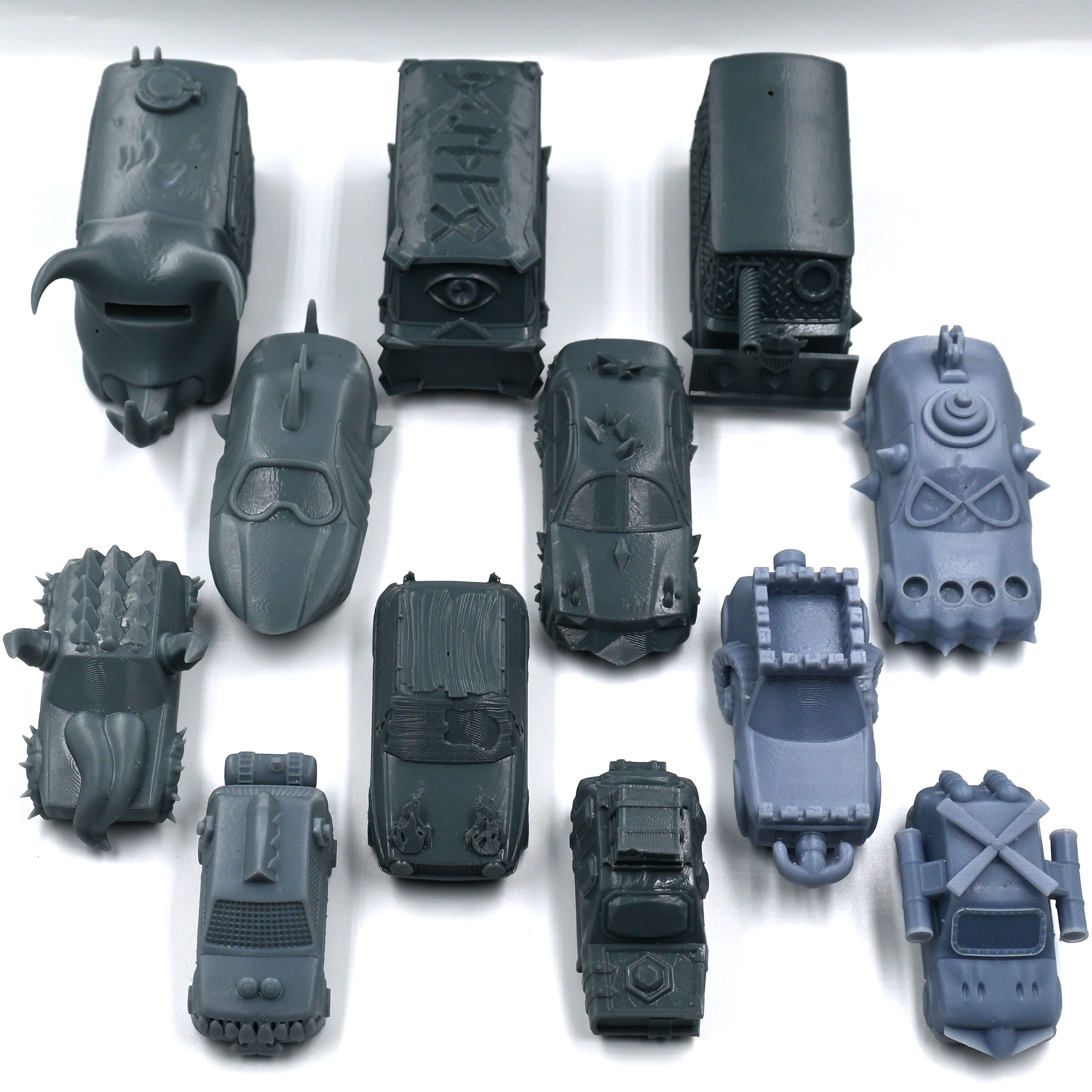Pudełko zawiera 4 figurki pojazdów wydrukowanych w żywicy do Slav Borga, Fools’ Fuel i innych gier z samochodami. Ty decydujesz jakie - podaj je nam w wiadomości po zakupie!
