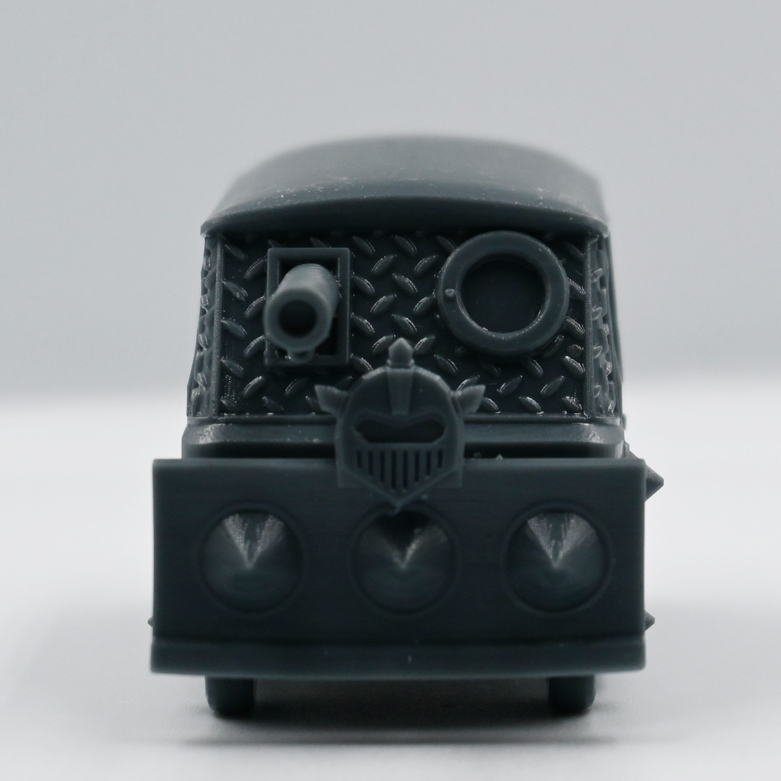 Pudełko zawiera losową figurkę pojazdu wydrukowanego w żywicy do Slav Borga, Fools’ Fuel i innych gier z samochodami. Zaskocz się!
